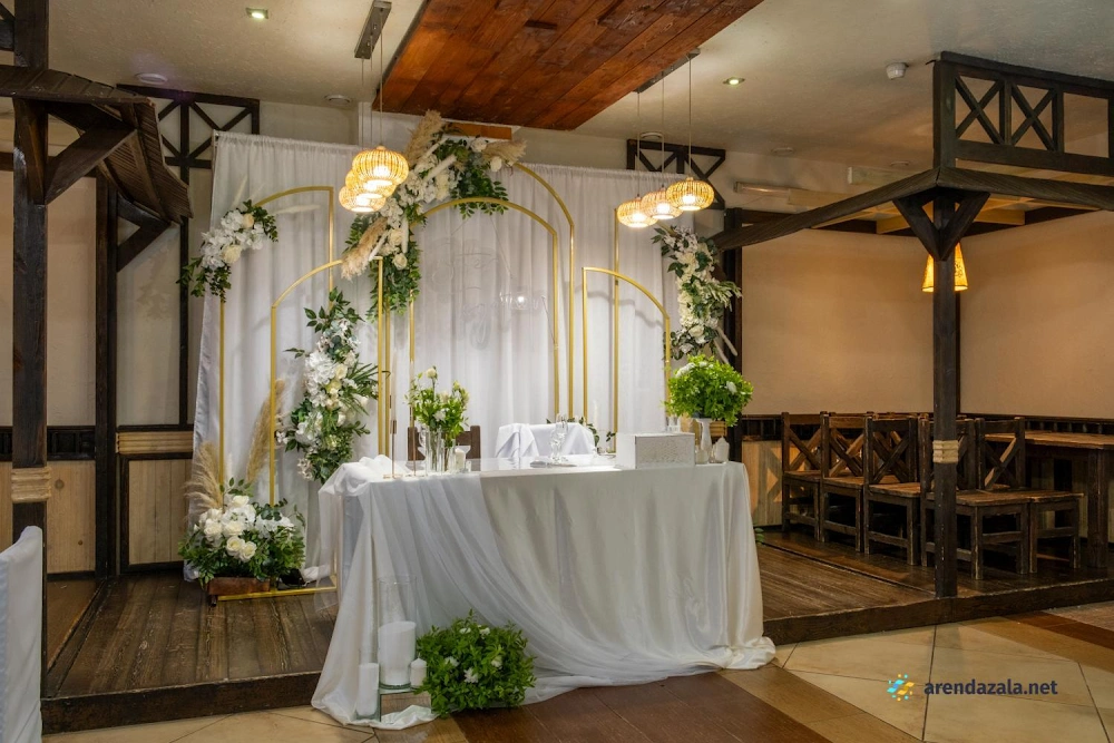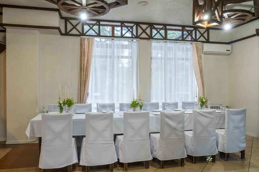 Банкетный зал представляет собой уютное и чистое заведение с ухоженной территорией, где можно провести семейные торжества. Заведение отличается разнообразной и вкусной кухней, а также приятным и внимательным персоналом. Интерьер заведения подобран со вкусом и создает атмосферу праздника. На территории имеется красивая беседка, где также можно организовать мероприятие. Заведение пользуется популярностью среди посетителей и получает положительные отзывы.